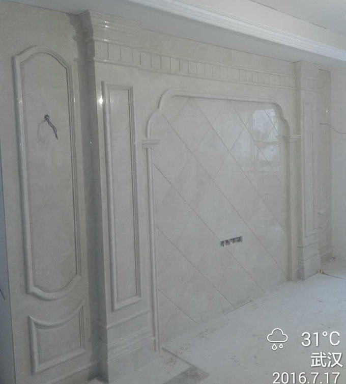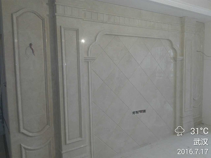 这款背景墙装修的时间段天气非常炎热,大家可以看到图片上有拍摄时的温度,是31°的高温,当时室内还未装修完工,还没有安装空调,在这样高温的环境下还要进行作业是非常辛苦的。在高温、暴雨等多种恶劣的环境下,安装人员还是很好的完成了整个项目,最终效果非常漂亮,章先生也非常满意,还说要请安装师傅去吃饭呢,不过我们公司有规定,绝对不能收业主任何礼物,包括吃饭,安装师傅就谢绝了章先生的好意。